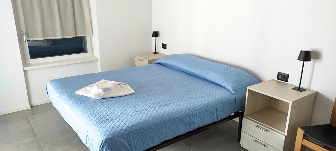 Es bietet zwei geräumige Schlafzimmer: eines mit einem Doppelbett und einem Schlafsessel mit zwei großen Fenstern und eines mit einem Doppelbett und einem Einzelbett mit Fenstertür zur privaten Terrasse.