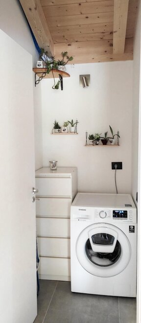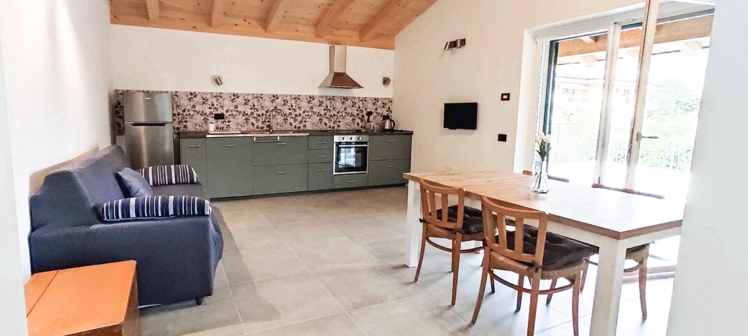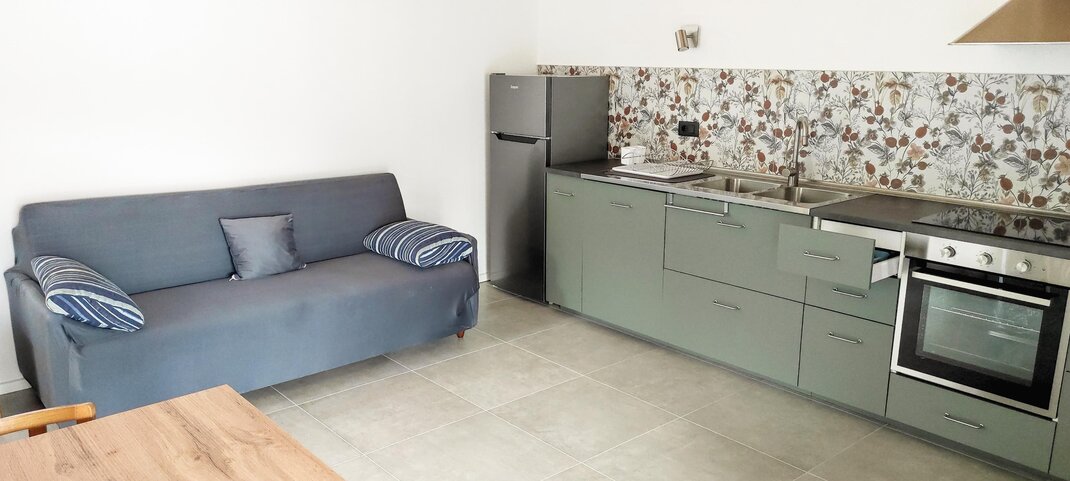 Im Wohnbereich gibt es ein Schlafsofa für zwei weitere Gäste, sowie eine geräumige Küche mit Kühlschrank, Backofen, Induktionsherd und Wasserkocher. Außerdem steht ein Bereich zum Wäschewaschen mit einer Waschmaschine zur exklusiven Nutzung zur Verfügung: von wo aus Sie das schöne Badezimmer mit großer, komfortabler Dusche erreichen.