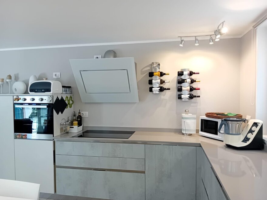 Neue Villa der Klasse B+ fast vollständig mit erneuerbaren Energiequellen wie Photovoltaikmodulen und Wärmepumpe betrieben. WIFI, Smart TV 50"Ultra HD 4K, mit Sky Sport Abo, Videoüberwachung, Alarm. Haus mit Fußbodenheizung, Wärmemantel und dreifach verglasten Fenstern, um eine perfekte Wärmedämmung zu gewährleisten. Photovoltaikanlage, Leistung der Anlage: 6 kW.Garten 200 qm eingezäunt, Brunnen mit heißem Wasser am Wasserhahn, große Sonnenterrasse und Gartengeräte. Entwickelt auf zwei Etagen, moderne Möbel. Kühlschrank, Gefrierschrank, Induktionskochfeld, Mikrowelle, Geschirrspüler, Mixer, Töpfe und Pfannen verschiedener Art, Geschirr und Besteck und Gläser aller Art. Private Wi-Fi, Wäscheständer, Bügeleisen und Bügelbrett, Bettwäsche und Handtücher inklusive.