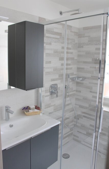Bad, WC, WC, Fließendes Kalt- und Warmwasser, Waschtisch, Dusche, Duschhocker, Pflegeproduktegeschenk, Bidet