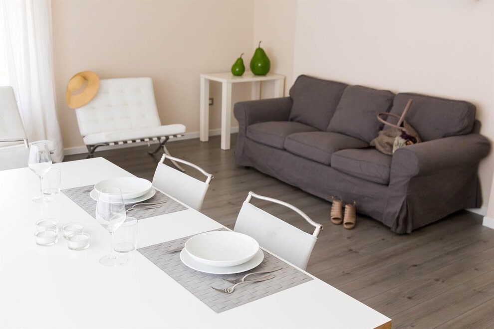 Die Wohnung im Erdgeschoss verfügt über einen direkten Zugang zum Swimmingpool (in Gemeinschaftsnutzung mit den Gästen der Ferienwohnung am erste Stock) und eine große Terrasse mit direktem Zugang aus der Küche. Die hat auch einen malerischen Ort mit entspannen Sofa und Frühstückstisch.