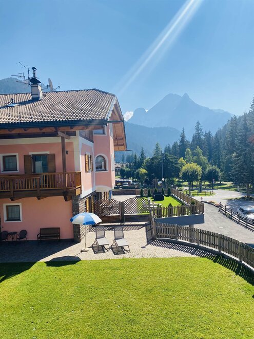 Die Apartments der VILLA LORY verteilen sich auf drei Stockwerke (Erdgeschoss, erster und zweiter Stock) und sind mit einem Aufzug ausgestattet. Das Haus verfügt über einen Rasengarten mit Liegestühlen und Sofas. Ausreichend Parkplätze im Freien stehen zur Verfügung und auf Anfrage und gegen Gebühr ist es möglich, die Garage zu nutzen. Es gibt einen gemeinsamen Wasch-/Bügelraum und ein Ski- und Snowboarddepot mit Schuhwärmern. Für die kleinsten Gäste haben wir die Möglichkeit, Kinderbetten, Campingbetten und Hochstühle bereitzustellen. Das Wi-Fi-Netzwerk ist kostenlos und in jeder Wohnung verfügbar. Im Sommer stehen Mountainbikes kostenlos zur Verfügung. Wir akzeptieren Haustiere, solange sie erzogen sind (ein Aufpreis kann erforderlich sein). Das Rauchen ist in unseren Appartements NICHT gestattet.