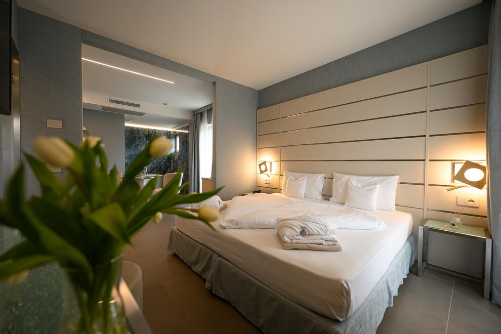 Ein grosser Park mit Salzwasser-Schwimmbad und ein moderner Wellness Bereich vervollständigen Ihr Refugium hier am Gardasee.