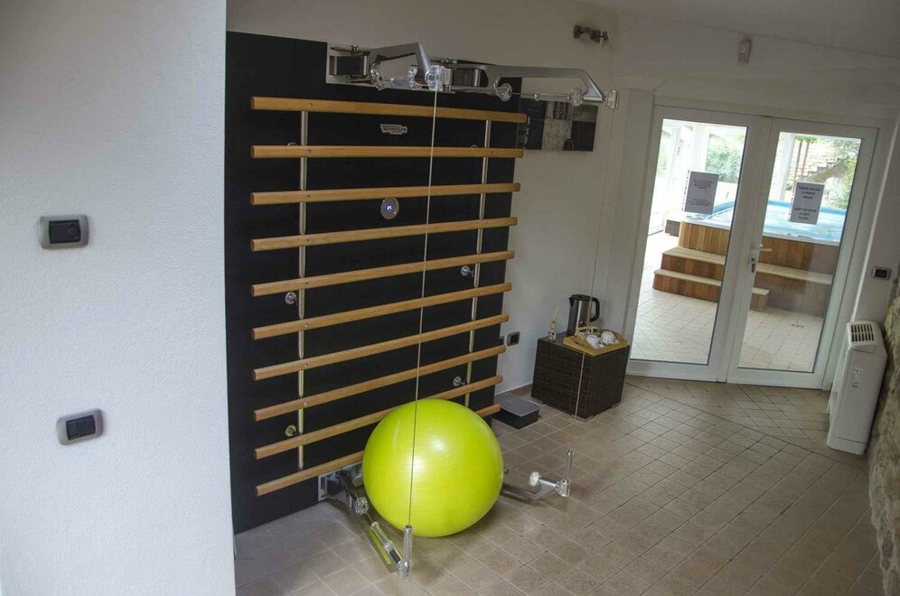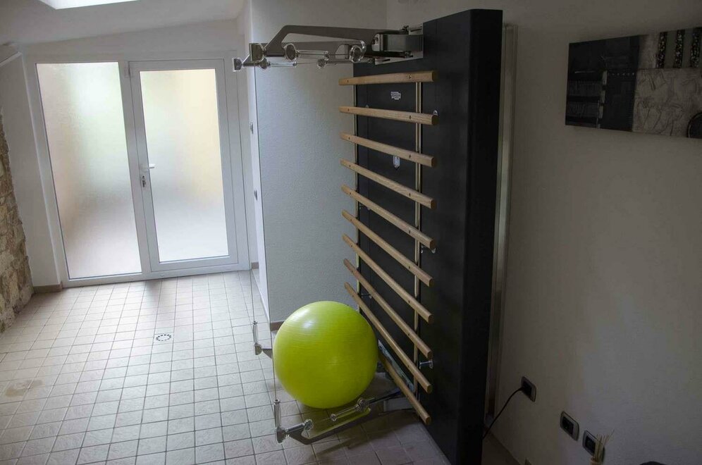 Die Struktur bietet eine private Garage für zwei Autos. Der Wohnbereich im ersten Stock bietet Blick auf den privaten Garten und den Innenpool. Die Küche ist mit allen Geräten wie Mikrowelle, Wasserkocher usw. ausgestattet und ein großer Esstisch ist vorhanden. Vor dem Betreten des Pools finden Sie eine kleine Kräutertee-Ecke und ein Fitnessstudio mit Tecnogym Kinesis für Freikörperübungen mit unterschiedlichen Widerständen. Der Pool (5,2m*2,2m) ist mit Gegenstromanlage und Hydromassage-Bereich ausgestattet. Die Wassertemperatur liegt bei 30 Grad. Der Schlafbereich mit drei großen Schlafzimmern (eines mit Doppelbett, eines mit Einzelbett und eines mit Etagenbett) mit zwei Balkonen bietet einen herrlichen Blick auf unsere Berge. Im Badezimmer im zweiten Stock befindet sich eine Teuco-Dusche mit türkischer Badfunktion.