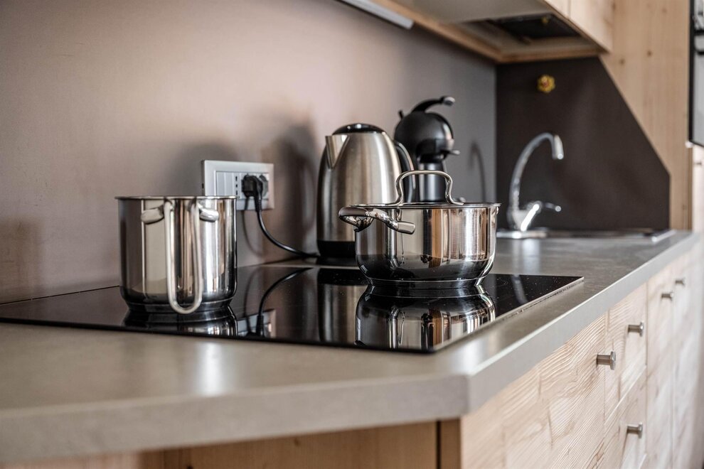- Kochfeld, Mikrowellenherd, Geschirrspüler, Kaffeemaschine, Wasserkocher