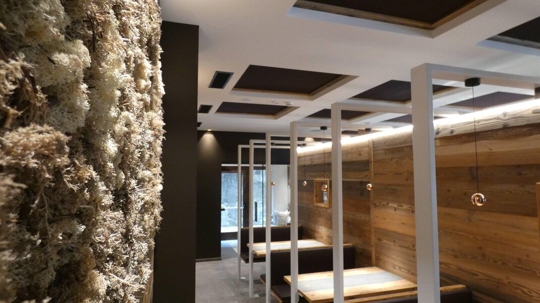 Garní Moss ist eine vollständig renovierte Unterkunft, die in einer privilegierten Lage zwischen dem Berg und dem Zentrum des Dorfes liegt. Ideal für alle, die einen ruhigen Aufenthalt suchen, aber nah an allen Annehmlichkeiten, bietet sie eine einladende und moderne Atmosphäre. Die Bar, perfekt für Frühstücke, Aperitifs und Cocktails, ist der ideale Ort, um den Tag zu beginnen oder angenehme Momente in Gesellschaft zu verbringen.