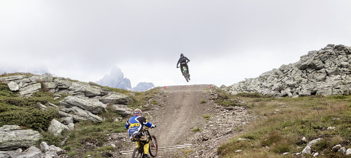The San Martino Bike Arena above San Martino di Castrozza is typical of the level of facilities we offer. Here, a 5km downhill trail drops through 700m, and features all kinds of ramps, jumps and parabolic curves en route; as well as the Chicken Line for anyone who wants an easier ride down. The Tognola cable car provides the uplift, and there are a host of bikers’ services available, including downhill bike rental, a chillout terrace and après-bike parties each weekend.