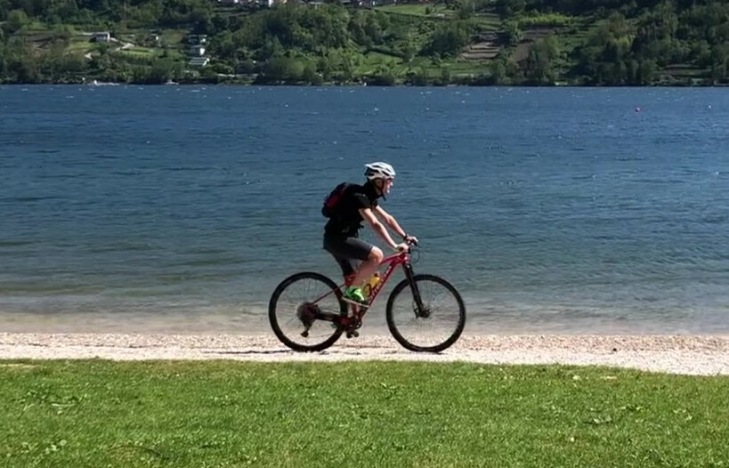 At 8.30 on the morning of our cycle, we caught the train to the lakeside town of San Cristoforo al Lago, a borough of Pergine Valsugana. From the station we made our way to Villa Sophie (a 2-minute walk) where we picked up our bikes. Then, just enough time to latch our helmets and we were off!