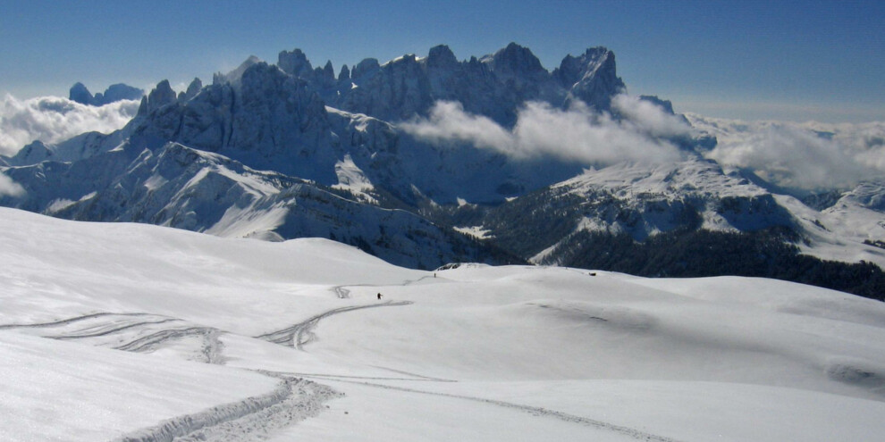 Away from crowded slopes, noisy resorts and the jostling queues for cablelifts: this is alpine skiers’ mecca. In Trentino, the oldest and most classic of all the alpine disciplines has the perfect playground to experience every emotion: first, climb the mountain, step by step, taking it all in - the sweeping views and the natural elements, then ski downhill feeling the adrenaline rush as you freeride on fresh powdery snow.