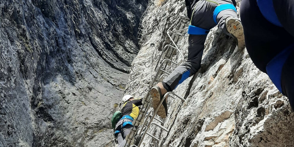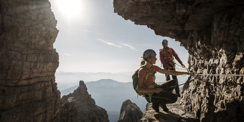 Your adrenaline is pumping, the sheer emptiness beneath you is mind-boggling. You’ve just hooked your carabiners to the steel cable and have become one with the rock face. You feel every muscle in your arm stretch as you reach out for a steel rung. Silence, concentration and then, finally, the summit. Around you rise countless peaks, the higher ones still crowned with snow. You point them out one by one, recalling their names. Once you’re at the top, fatigue becomes a distant memory. That’s what it’s all about!