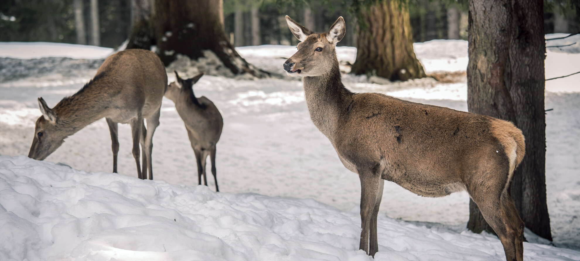 A flurry of white animals: these are the Dolomites at high altitudes, in winter. Do not be fooled by their apparent stillness: in the various valleys there are battles, escapes and hide-and-seek to survive, with beauty and elegance, in the harshness of winter.
