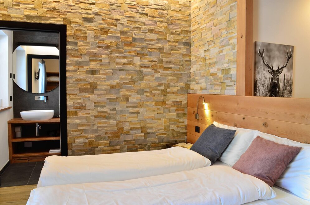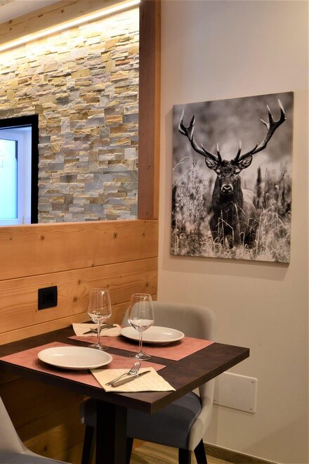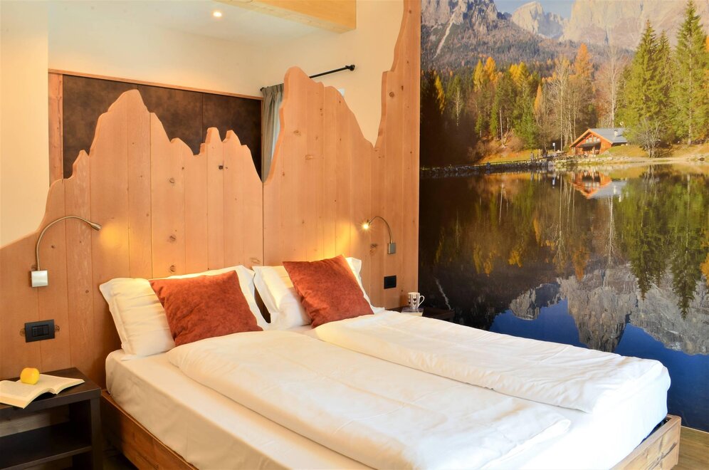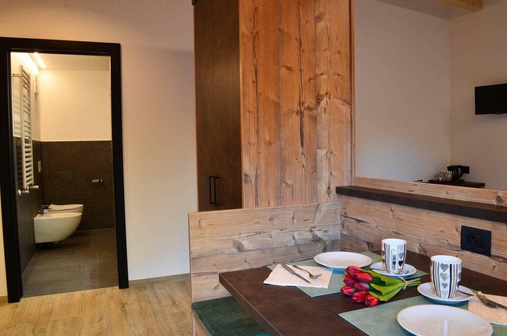 Each room is different from the other to inspire different mountain sensations such as in the Snow Room, with the colors of winter, or from the autumn panorama in the Laghetto Room, to the summer panorama in the Ruscello Room, or a cuddle in the Benessere Room with its private infrared Sauna..