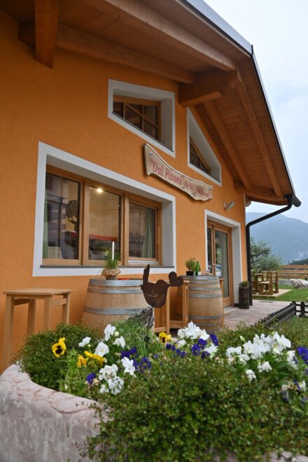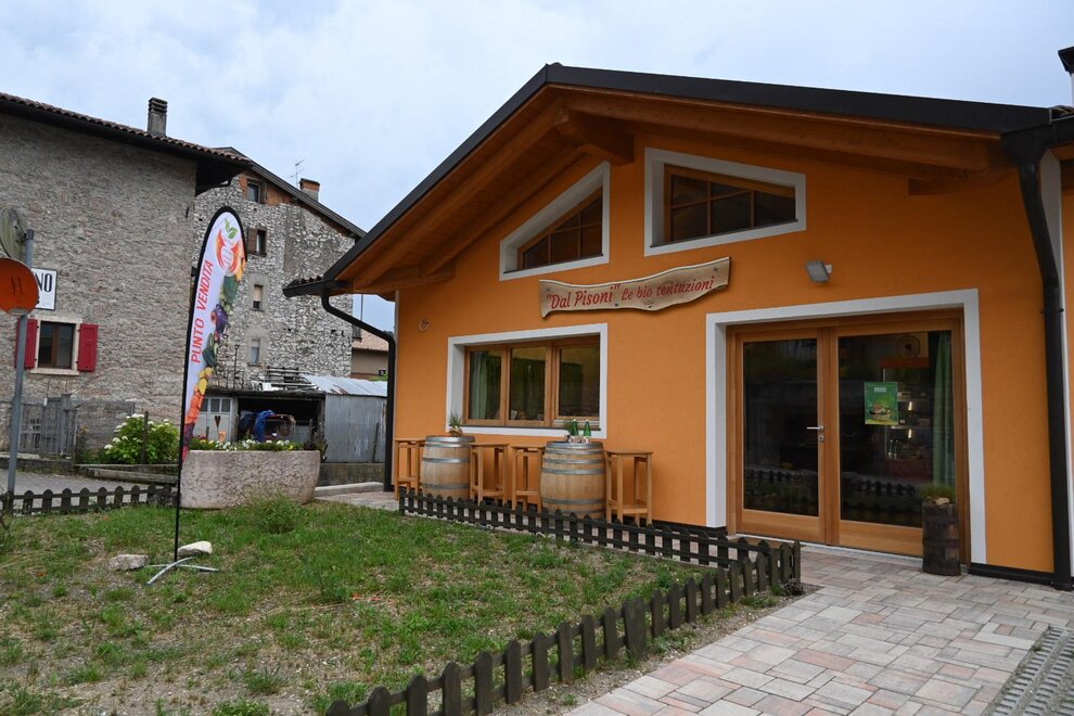 Coming from Trento, follow the signs for Riva del Garda, then, after passing through Vezzano, take a right towards the Valle di Cavedine, go up and you will find Calavino, then continue on the main road, you will find a roundabout, take the second exit and, shortly after, at the traffic light turn left and enter towards the village, follow the road without deviating, at the stone cross continue straight and you will arrive at the first buildings, continue and on your right you will find a small shop with orange-colored walls, you have arrived.