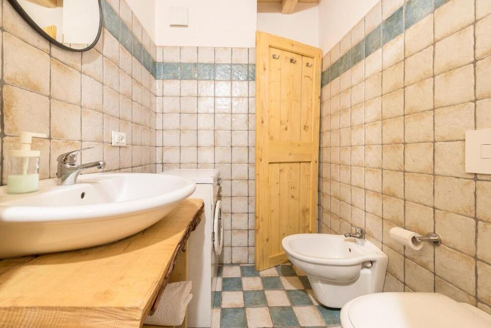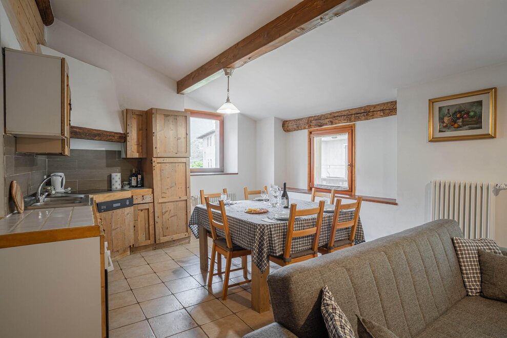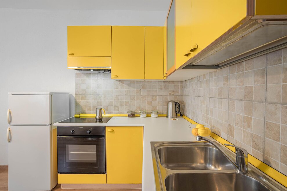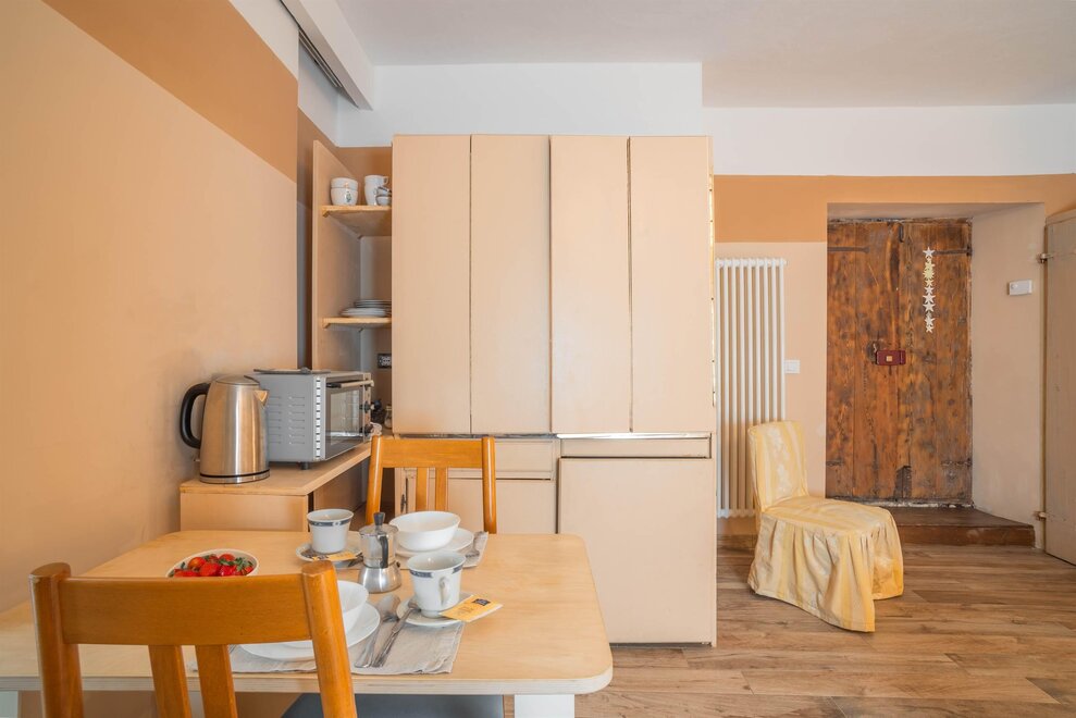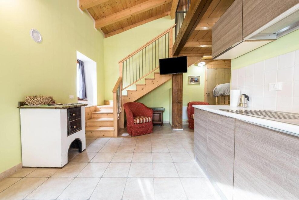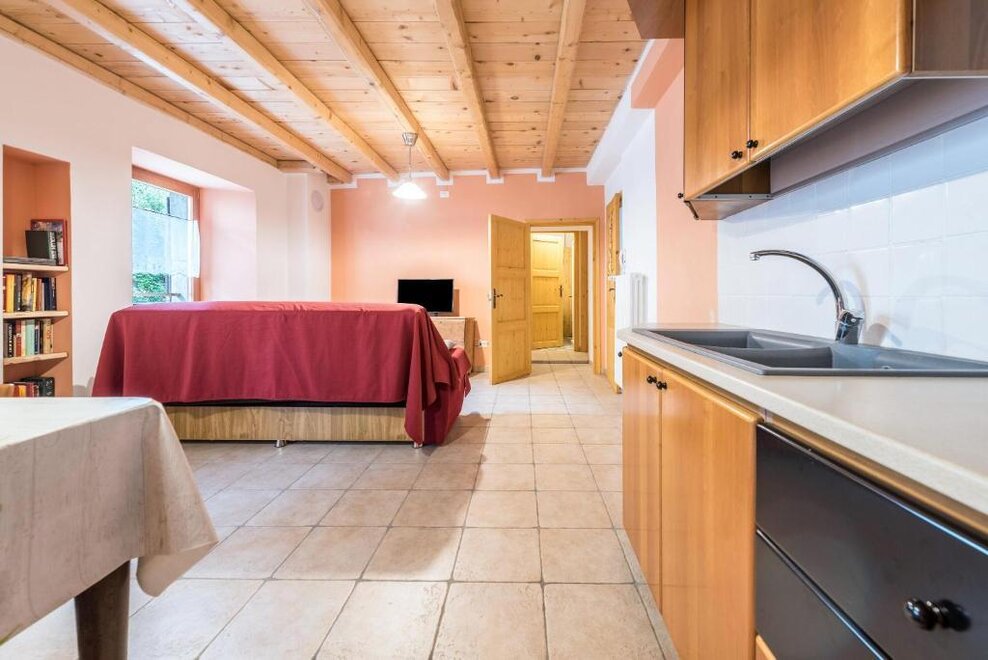 The red apartment is on the first floor. There is the living room with kitchen and a double sofa bed, a double room, the bathroom. It is suitable for up to 4 people.