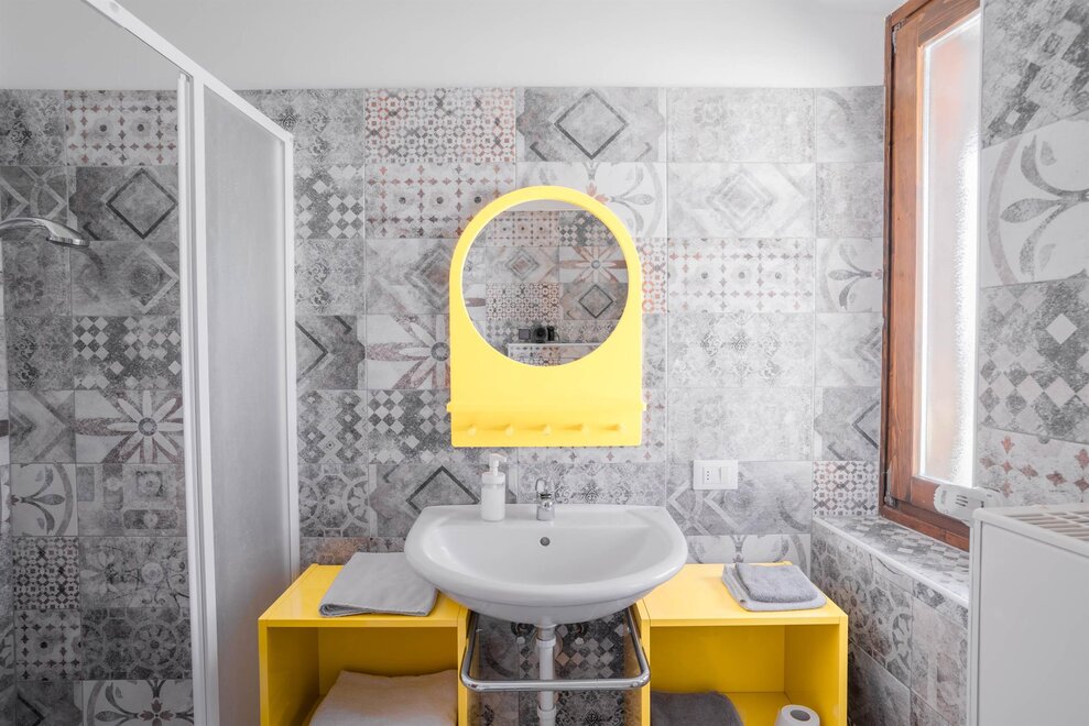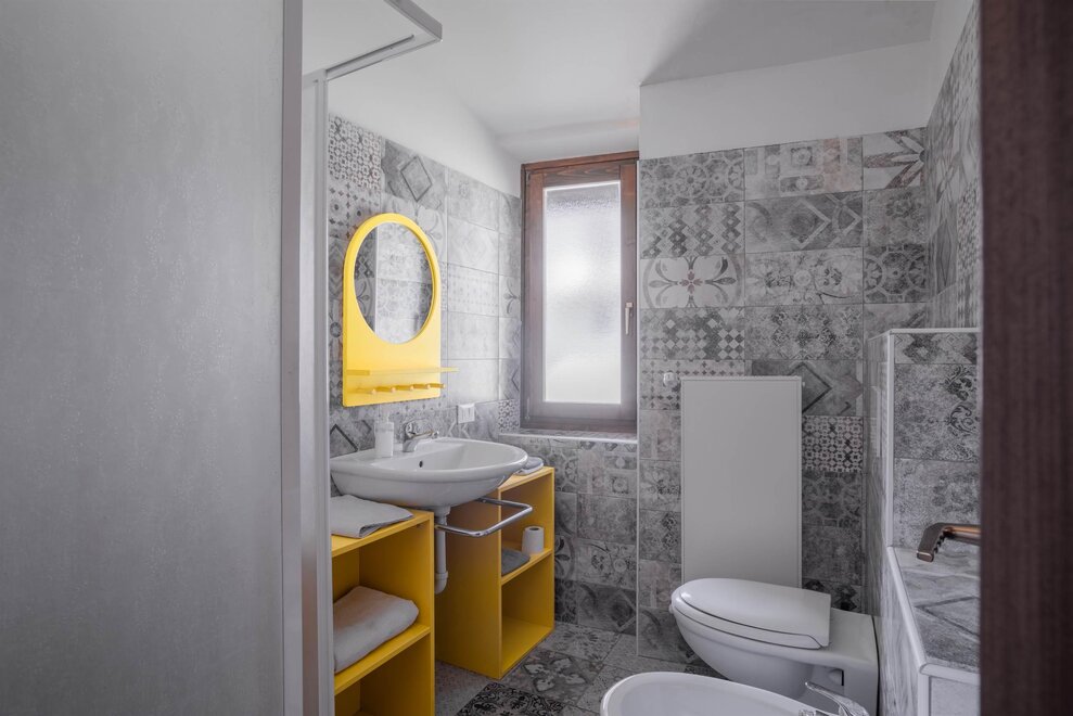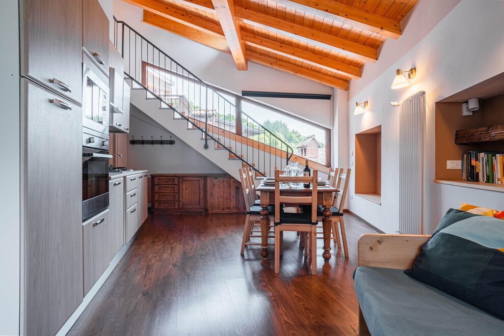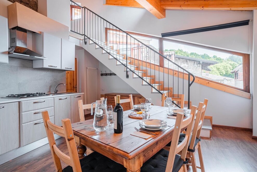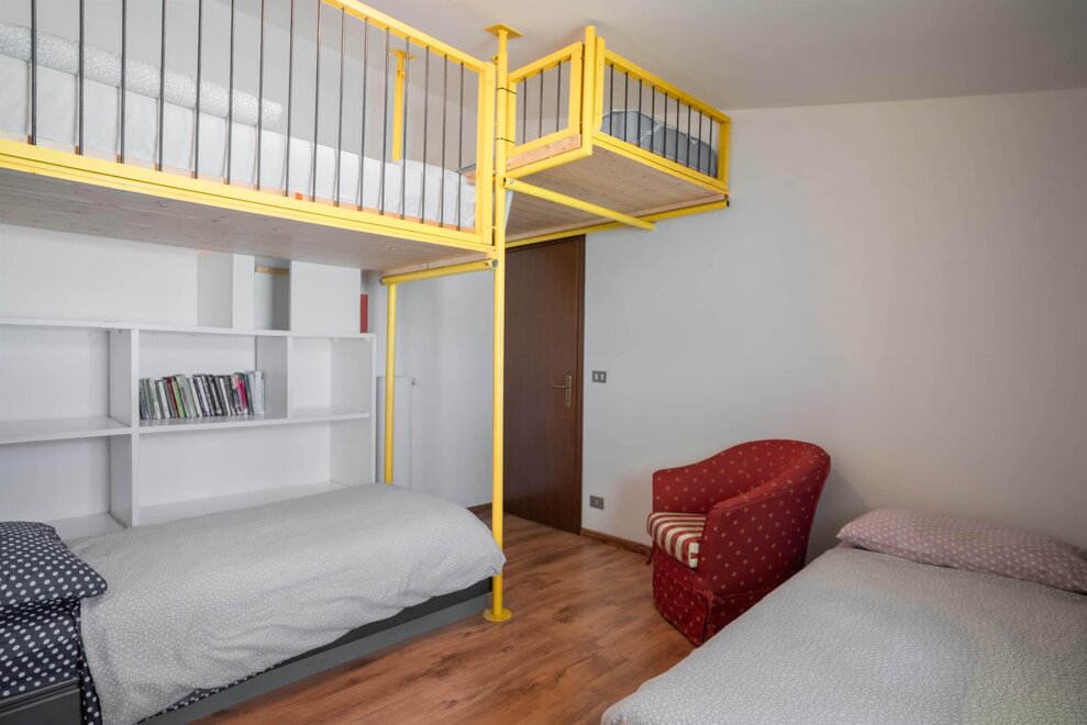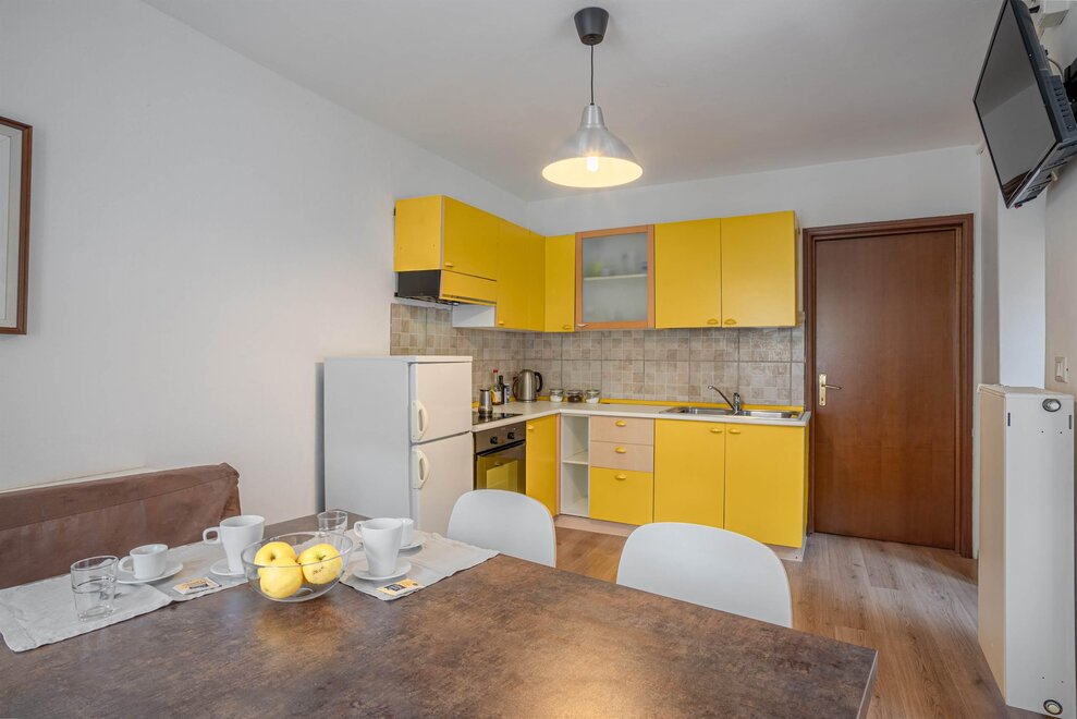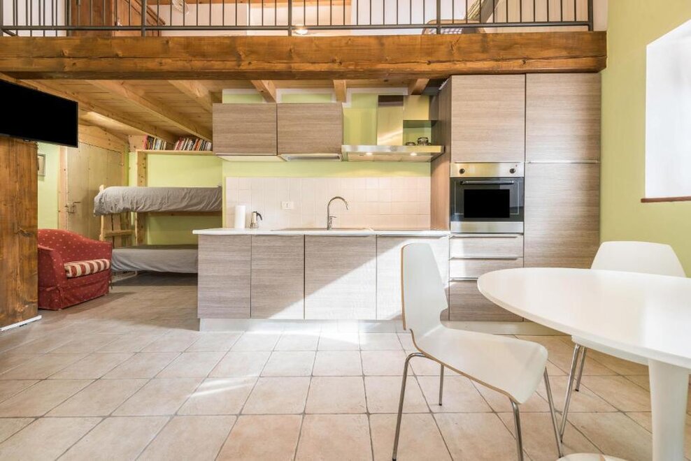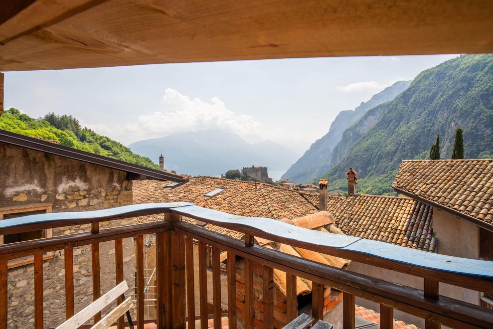 The lilac apartment in located on the second floor and has a mansard roof. There is a large living room with kitchen and double sofa bed, a bathroom, a double room, and a room with a bunk bed. It has two private balconies: one overlooks Revedù street, while the second one has a very romantic overlook over the Tenno castle and Lake Garda. Suitable for families or couples of friends. Maximum 6 beds.