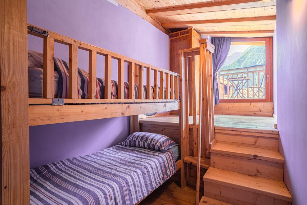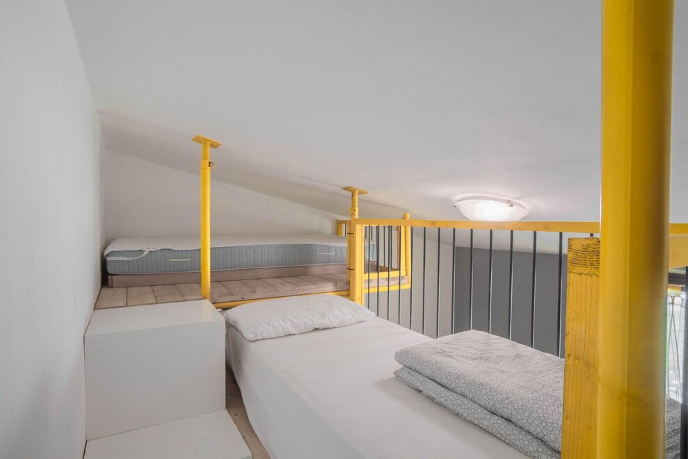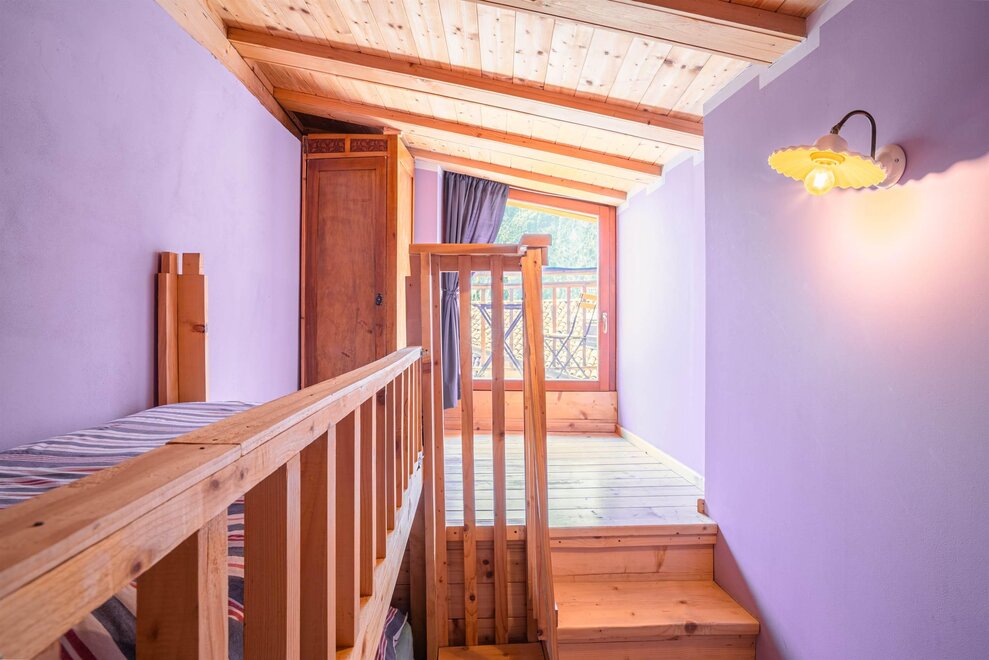 It is located on the raised floor. It can accommodate four people; it consists of a living room-kitchen with a corner bunk bed, a loft with a double bedroom, and a bathroom.