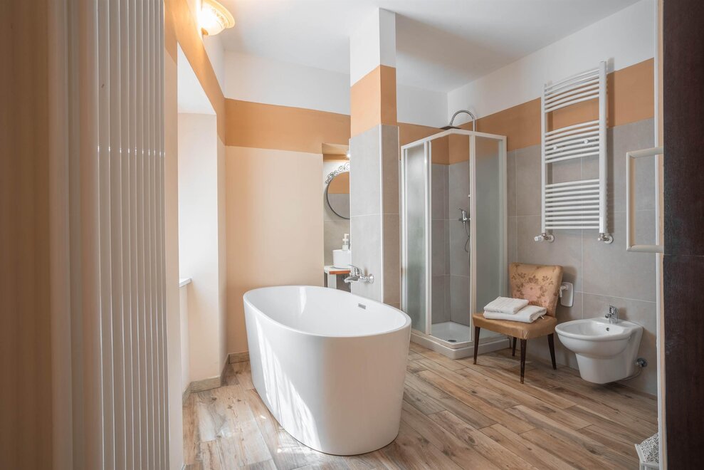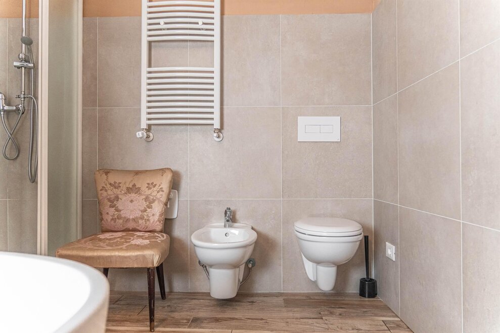 no. of bathrooms: 1, toilet, shower, bath, bidet, running hot/cold water, wash stand