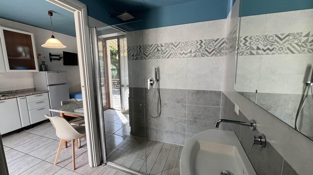 Bathroom with floor-level shower.workation