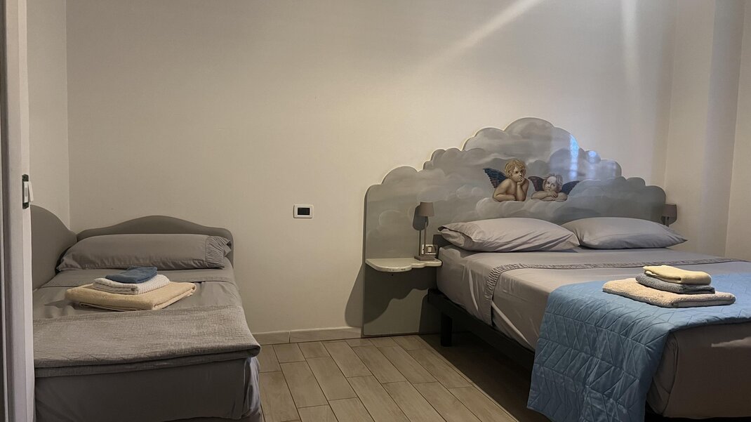 Triple room with bathroom and balcony, facing south.