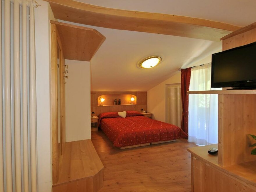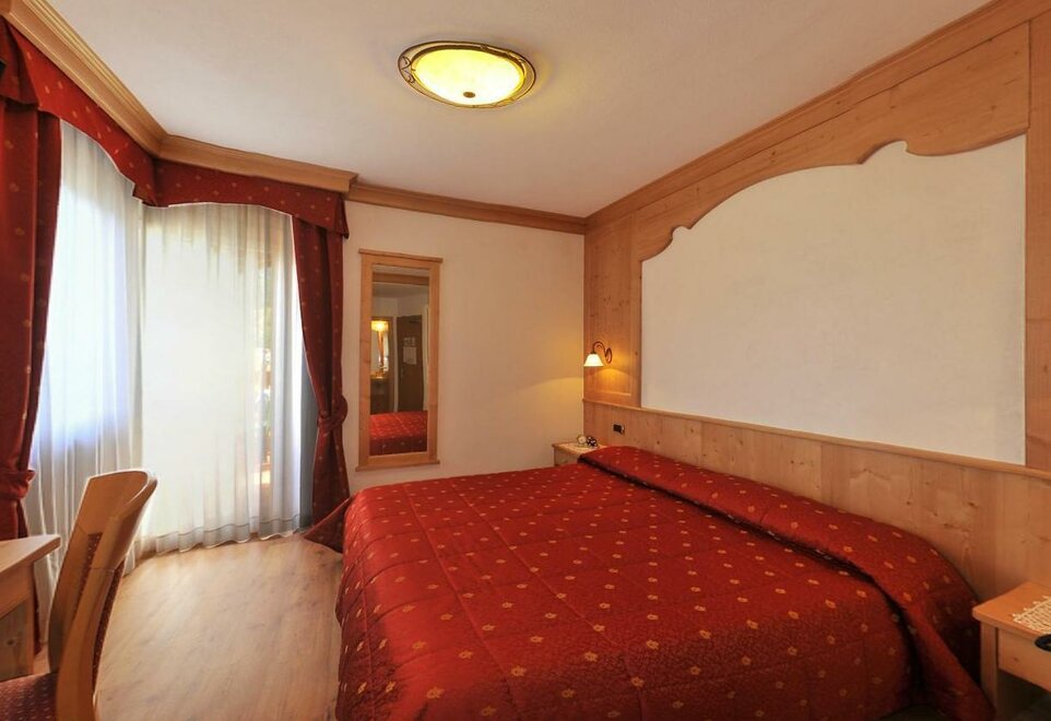 Very cosy, comfortable and welcoming double room, furnished in a sober style and hypoallergenic parquet flooring. It's equipped with a private bathroom with shower and hairdryer, balcony with a view of the Dolomites, Smart-TV, safe, telephone, Free high-speed Wi-Fi internet connection.