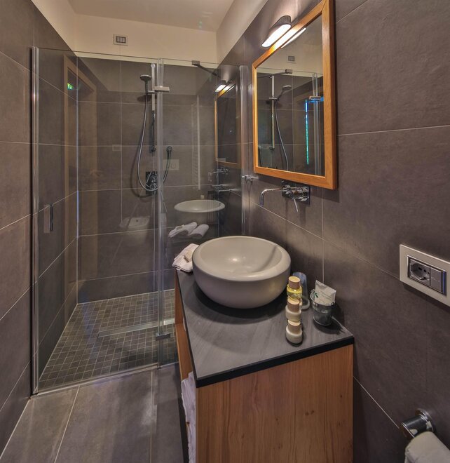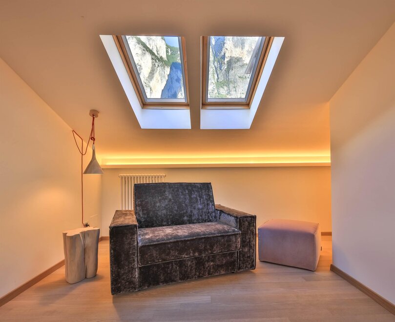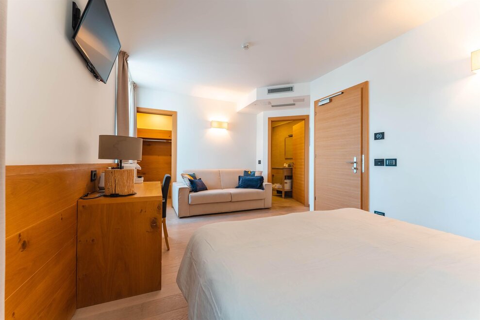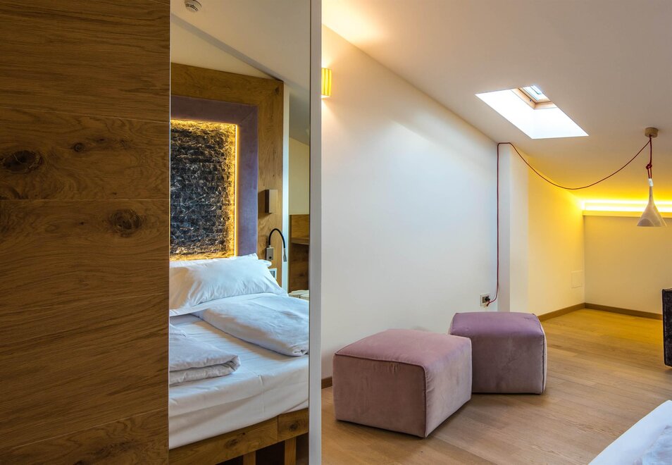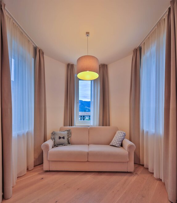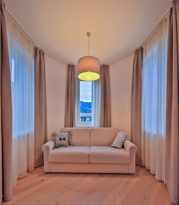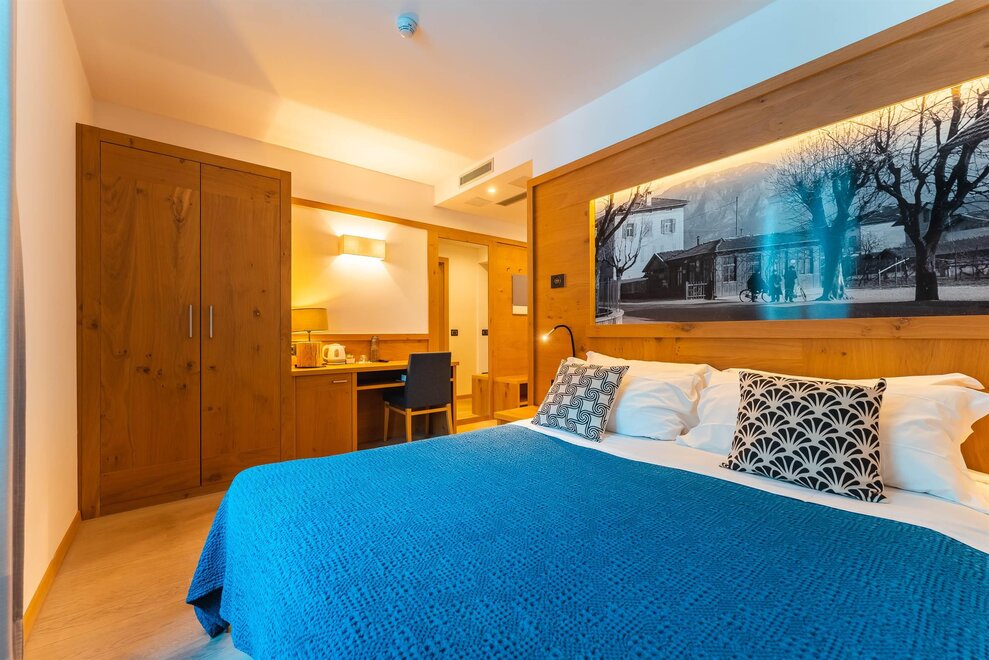 A spacious room ideal for business travelers or couples. These rooms have 2 separate spaces surrounded by large and bright windows from which you can admire the wonderful “Piana Rotaliana” but also the “Paganella” and its plateau.