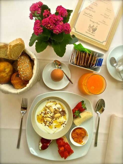 The complete breakfast buffet is included in the price of every room and consists of boiled eggs, fresh breads and spreads, meat, cheeses, cereals, yoghurt and espresso drinks. For those looking for an even heartier breakfast, our chef also offers express-made extras, such as scrambled eggs, smoked salmon, crepes and pancakes for a small added cost.