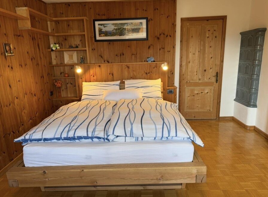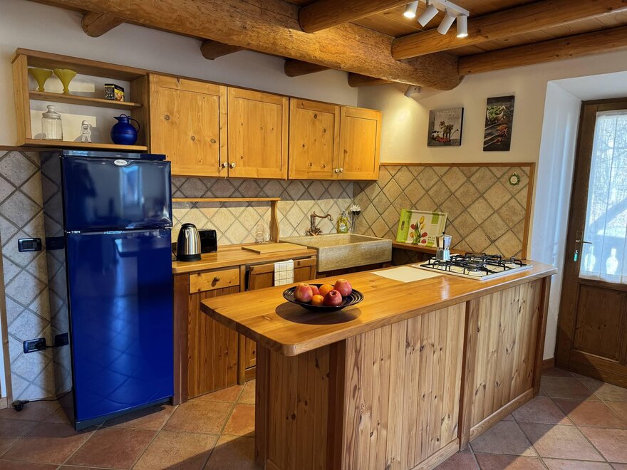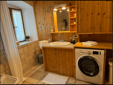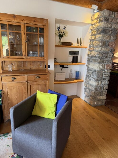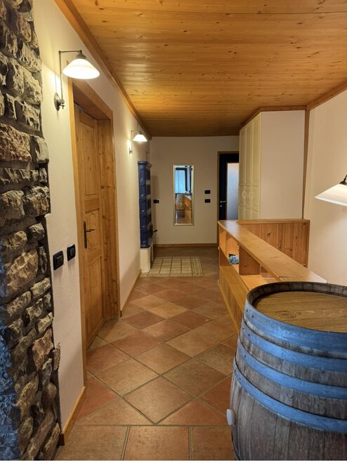 2 bedrooms: one double with the possibility of adding a camping cot and one twin with separate beds, equipped kitchen with dishwasher, electric oven, microwave, refrigerator with freezer compartment; 2 bathrooms: one equipped with a small sauna and one equipped with a hot tub. Availability of a cellar with the possibility of ski/bike storage. The apartment is equipped with 2 ceramic stoves and is 100m from the Bertoldi ski lifts.