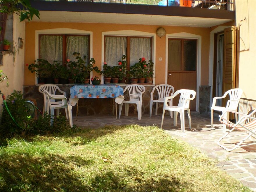 The ground floor apartment (4 + 1 pax), furnished in a simple way, it will make you enjoy your holiday for its premises sufficiently spacious and suitable to accommodate 4 people and with the possibility of adding a bed in the master bedroom. The bedrooms are divided into one room with double bed (possibility of adding a bed or cot for children) and another with two single beds (can merge them into double bed) and the door leading to the garden. The living area consists of a small kitchen with gas hob and electric oven and a living room with a small TV, a tiled stove and a large window from which you can admire the lake. Finally the bathroom has a tub / shower. In winter you will find the local already heated but to maintain your ideal temperature you will have to start the fire once a day, a chance to experience the warmth of the mountain.