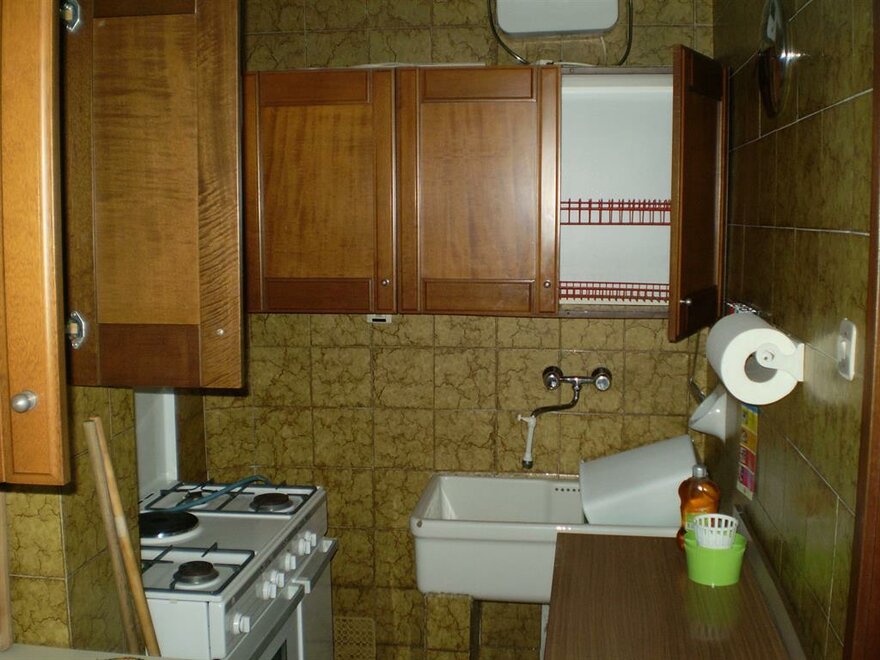 dishes available, separate bedroom/s: 2, use of washmachine, washing machine, refrigerator, central heating, dining room, store room, TV, dish sink, bedding, oven, kitchen, WiFi, cooking possibilities, balcony (in some rooms), iron, freezer compartment, gas stove, simple furnishing, balcony