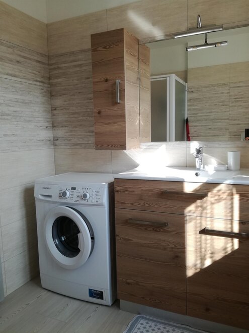 closet, open plan kitchen/living room, iron, balcony (in some rooms), oven, modern furnishing, refrigerator, quiet room/apartment, desk, socket close to bed, Wi-fi free of charge, feather beds, washing machine, TV, crockery and cutlery , dishwasher, vent hood, WiFi, rustic furniture, apartment without fitted carpet, seasonal rental too (winter), microwave, kitchen utensils, tiled or marmor floor, hairdryer, seasonal rental too (summer)
