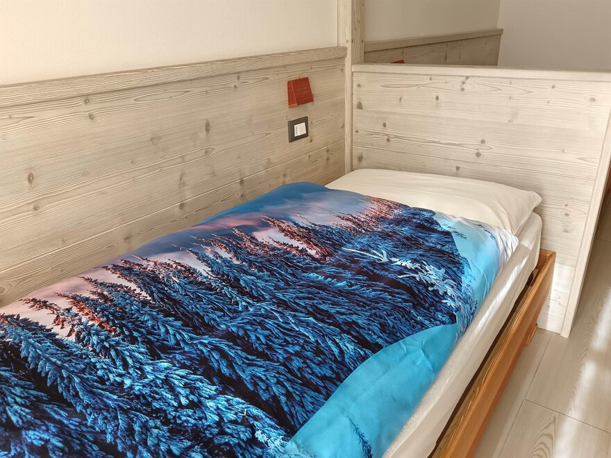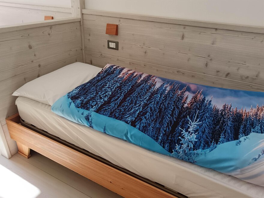 Warm wooden furnishings, orthopedic mattresses and slatted base. Comfortable summer and winter duvets