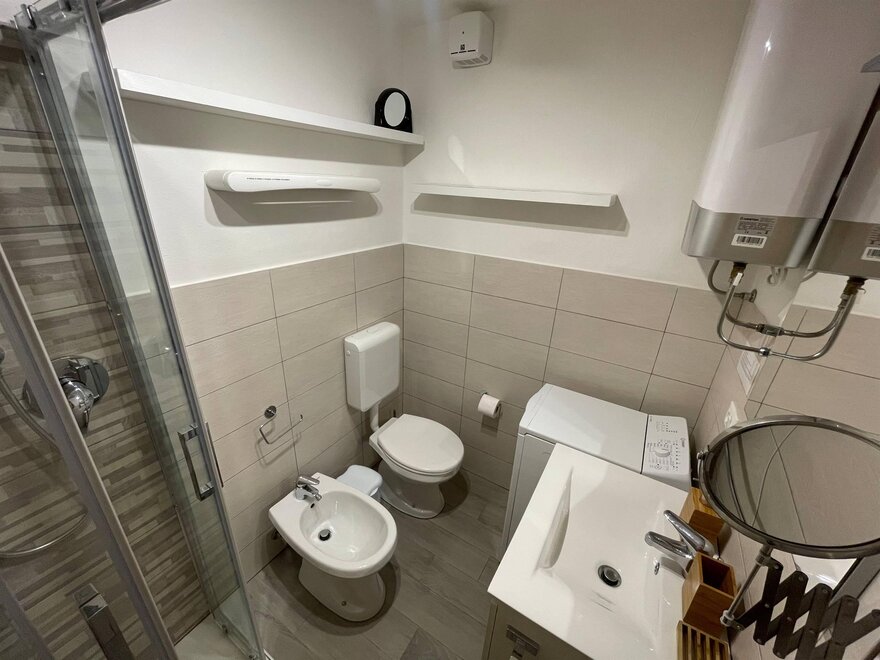 The apartment is equipped with a washing machine, microwave, coffee maker, iron, and all the necessary equipment for a peaceful stay.