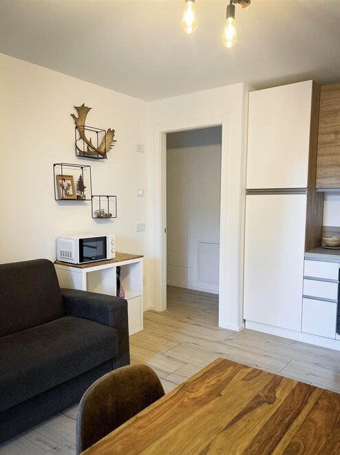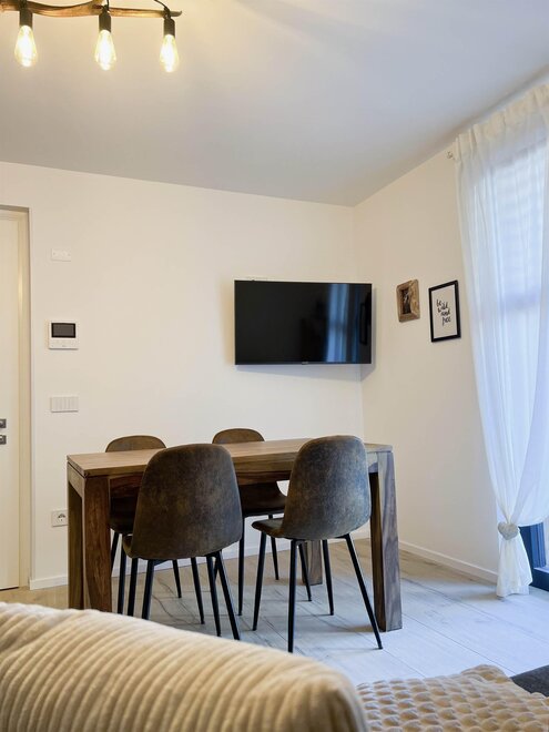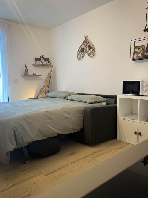 Residential area, connected by a shuttle service with a stop right in front, you can easily reach the ski lifts and the center, about 1km away. It has 3 satellite TVs and free wifi, equipped with a high chair and crib for infants.