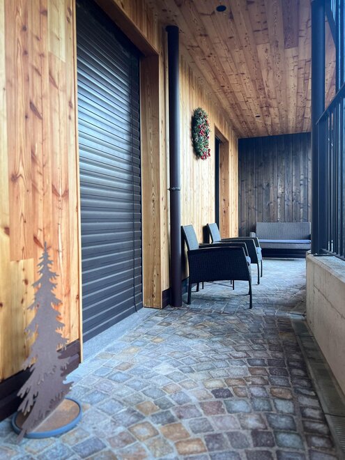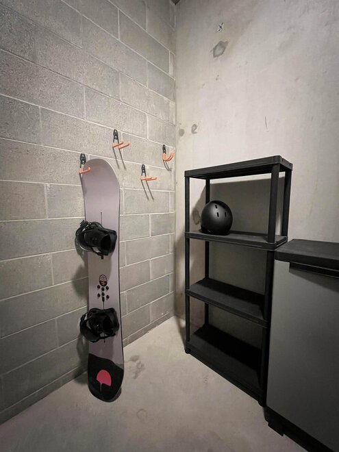 Convenient exclusive storage for skis, snowboards, and bicycles, with an electrical outlet. Private garage.