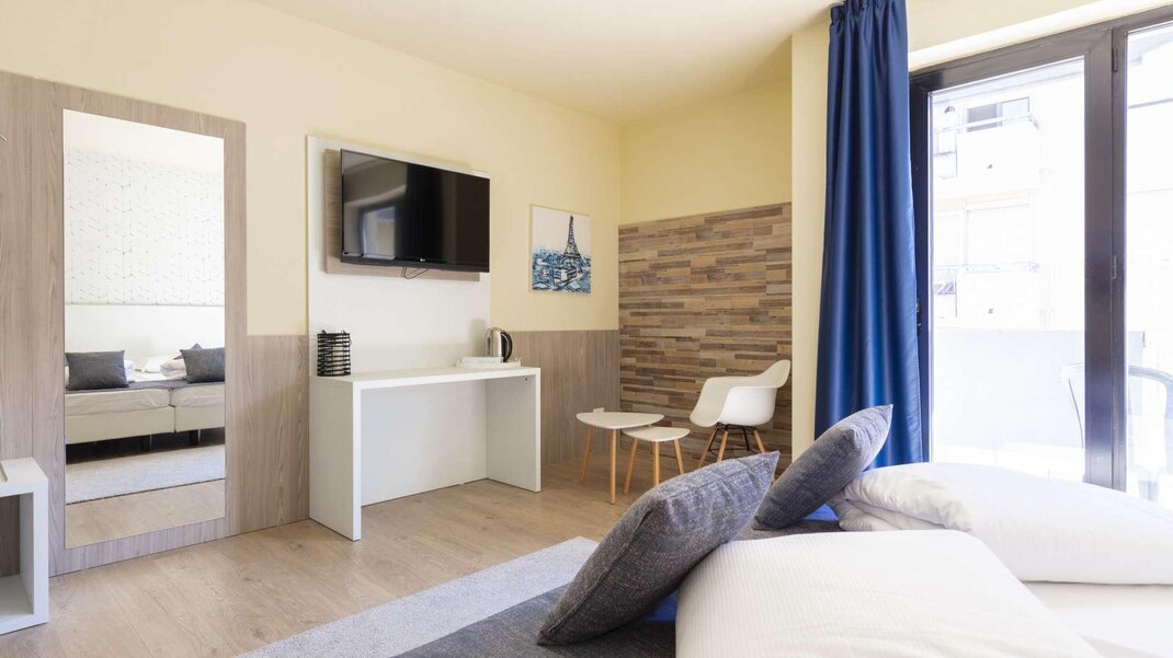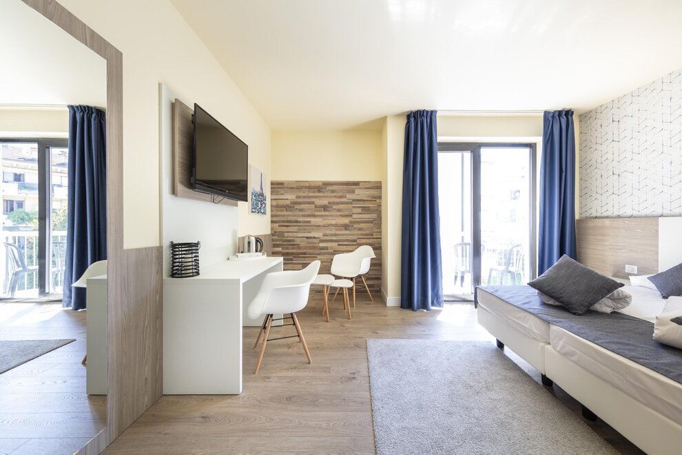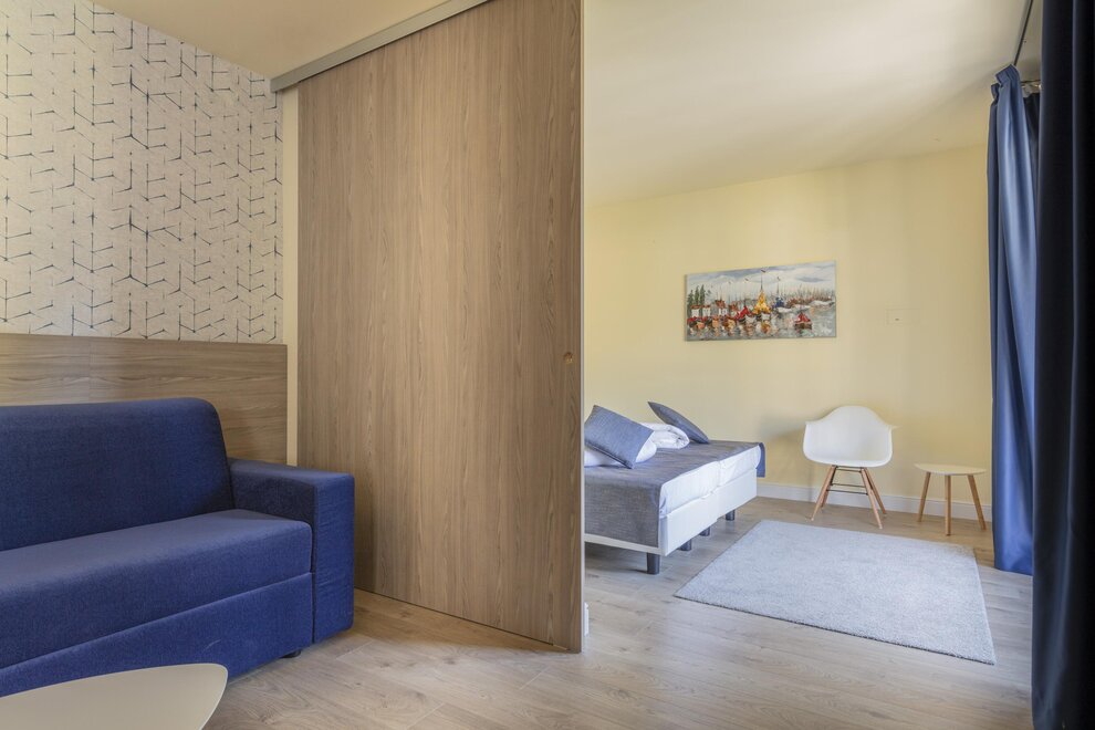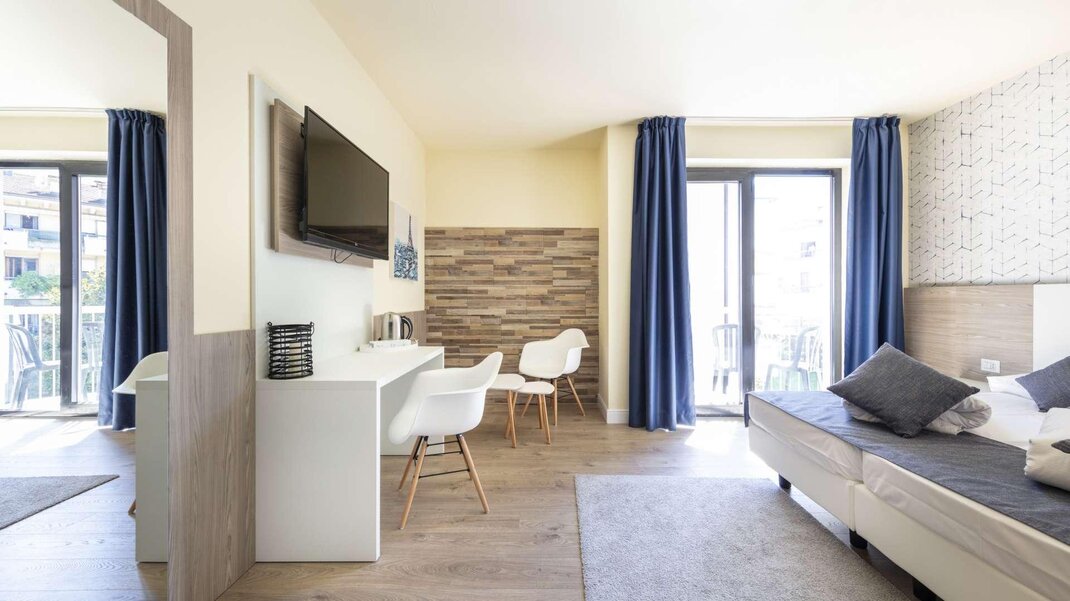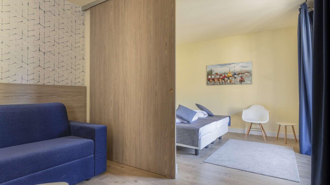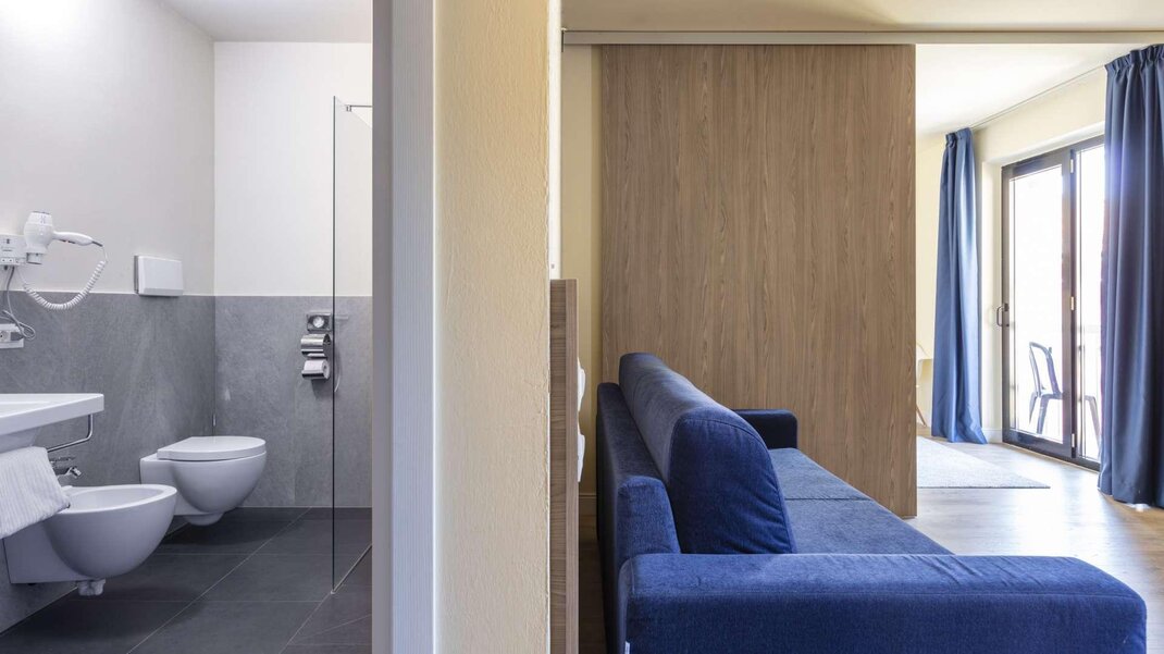 Comfort, versatility, style. Three words that describe the soul of these suites with a living room corner and a double sofa bed.