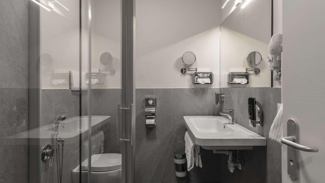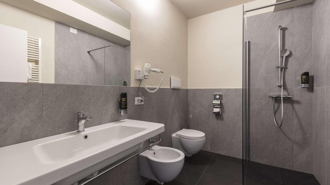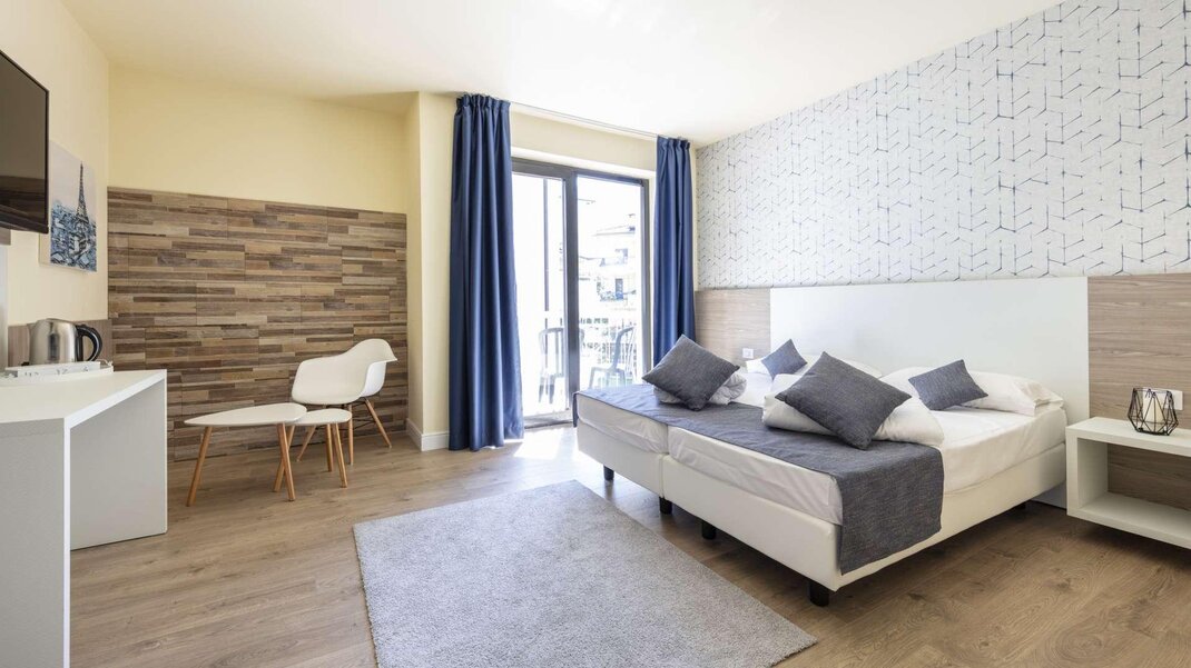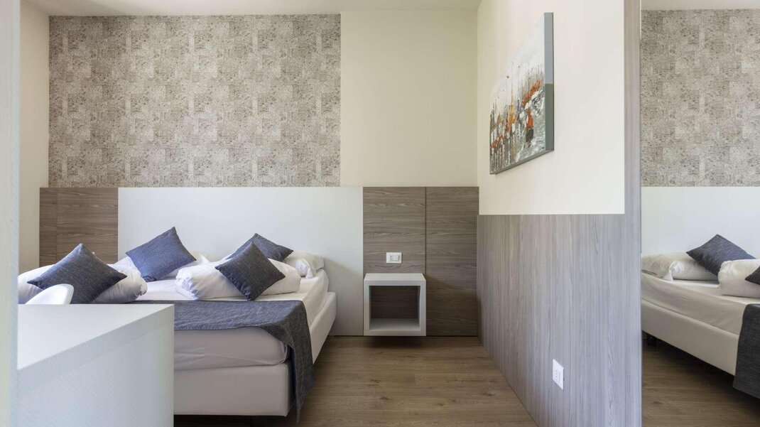 Neutral colours merge with more decisive tones, selected materials enhance the environment, designer details offer character. Comfort and style, this describes your room for a perfect holiday.