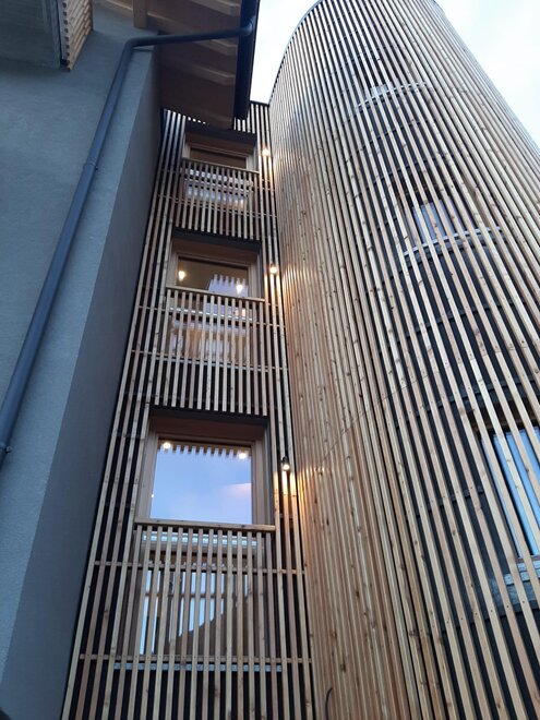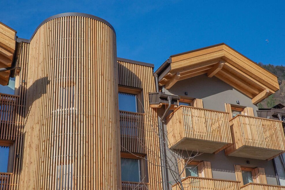 The Rosa apartment invites relaxation and sweetness, like a sunset over the Dolomites, perfect for rejuvenating after an active day. Each unit is characterized by the use of local materials, such as tonalite and larch wood, which evoke the authenticity of the territory and create a warm, natural atmosphere. The high-quality furnishings and finishes have been created with meticulous attention to detail, combining tradition and modernity in perfect balance.