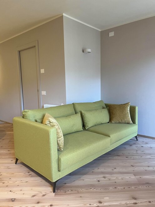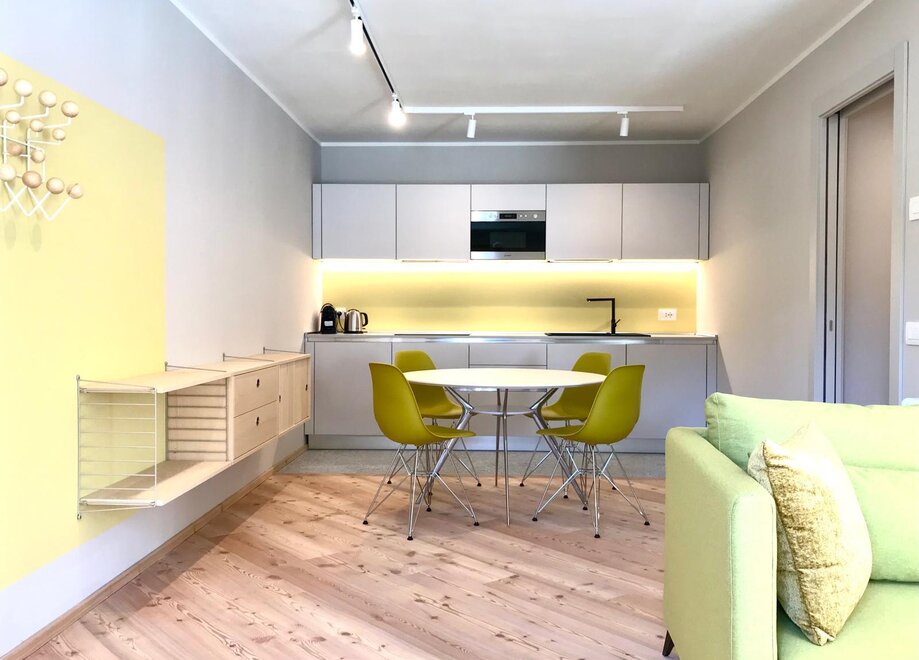 The Yellow apartment evokes the warmth of the alpine sun, illuminating the living room with positive and welcoming energy. Each unit is characterized by the use of local materials, such as tonalite and larch wood, which reflect the authenticity of the area and create a warm and natural atmosphere. The high-quality furnishings and finishes have been crafted with meticulous attention to detail, combining tradition and modernity in perfect harmony.