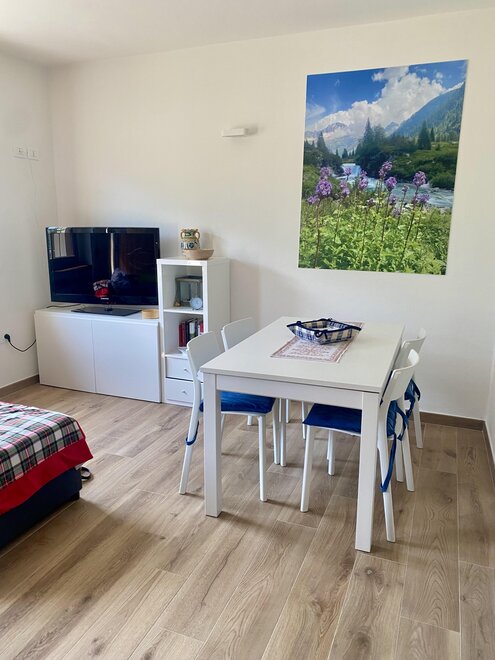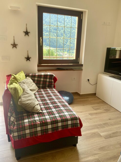 The Borzago Apartment welcomes you with its warm family atmosphere. This apartment located in a private house of only three units features 2 double bedrooms, a bathroom with shower and washing machine, an open space with living room and kitchen overlooking the splendid terrace with a view of the valley.