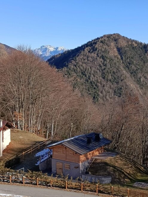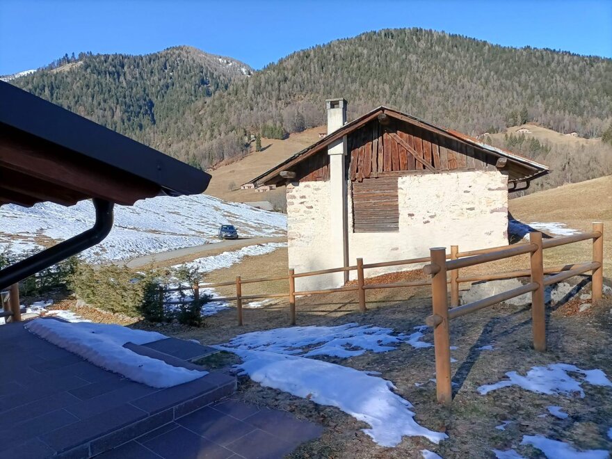 Arriving at Castel Condino, continue towards Boniprati. After about 4km, as you enter the forest, on the left you will find the sign for the locality Mangio. Continue for about 3km and on the right you will find the cabin.