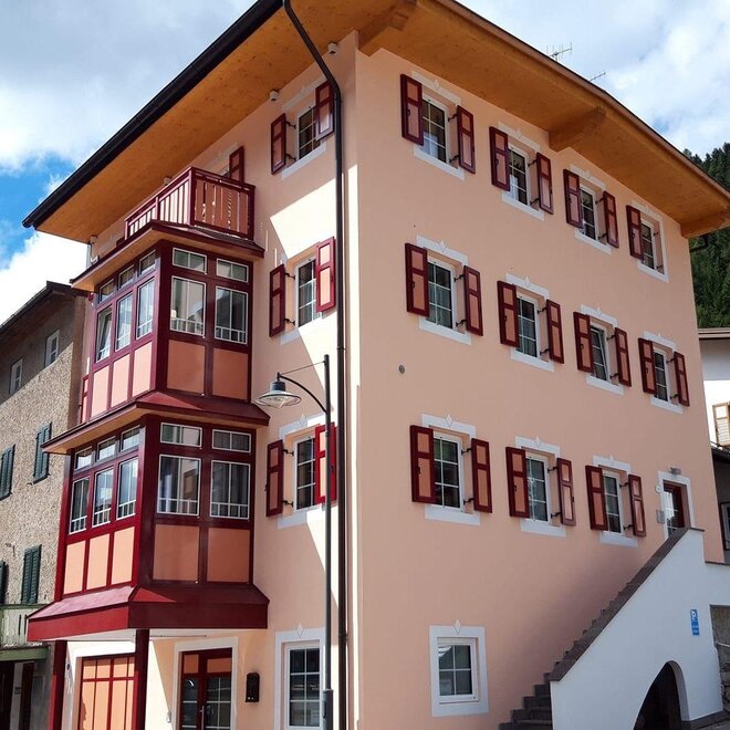B&B Ingrid is a family-run facility that was completely renovated in winter 2019. We are open all year round and are located in the center of Campitello, in a convenient and panoramic position, surrounded by the Sella, Sassolungo and Pordoi mountain ranges. The Col Rodella ski lift is just under 300 meters away, the ski bus stop is 50 meters away, and all the services you need for your vacation (restaurants, rentals, supermarket and stores) are conveniently within walking distance. All our wood rooms are equipped with wi-fi, private bathroom with shower stall and hair dryer. Every morning you can enjoy our sweet and savory breakfasts. Variants suitable for guests with celiac disease are also available upon request. Our B & B offers private outdoor parking for cars, covered garage for motorcycles and bicycles with possibility of charging for electric bikes, ski room with boot warmer and private locker.
