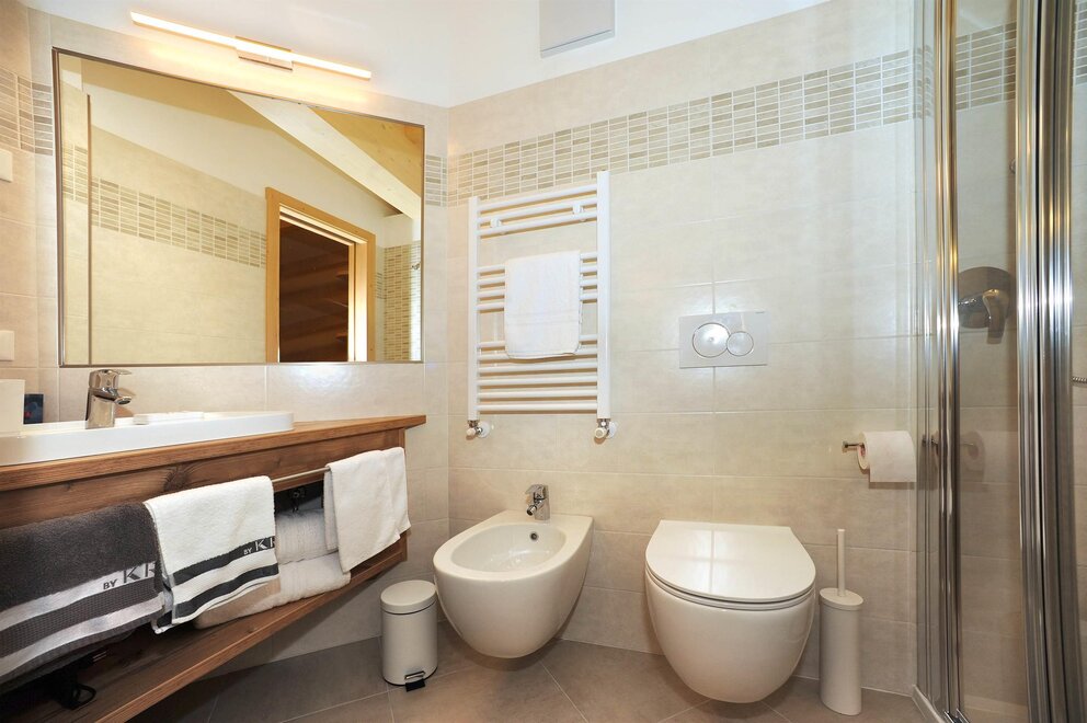Double room with wi-fi, and handcrafted furniture in aged fir wood. The room has a balcony with a panoramic view over the square in Campitello and the Sella and Pordoi groups. The private bathroom with shower cubicle is equipped with hairdryer. Possibility of adding a cot.