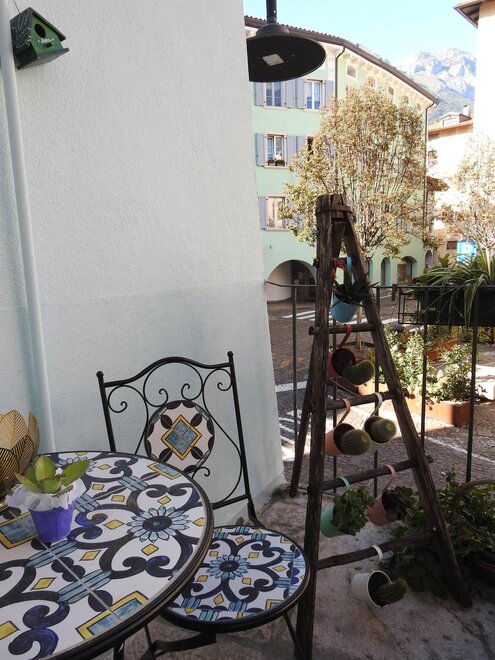 The B&B is located on the south side of the square in the large blue house easily recognizable for its small balcony with external steps.