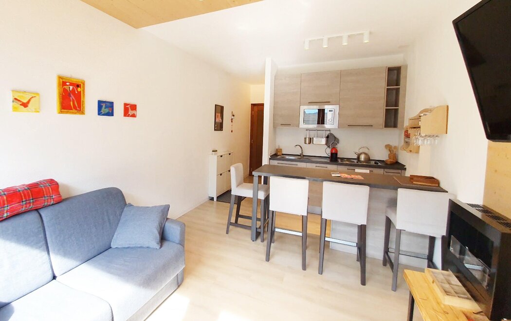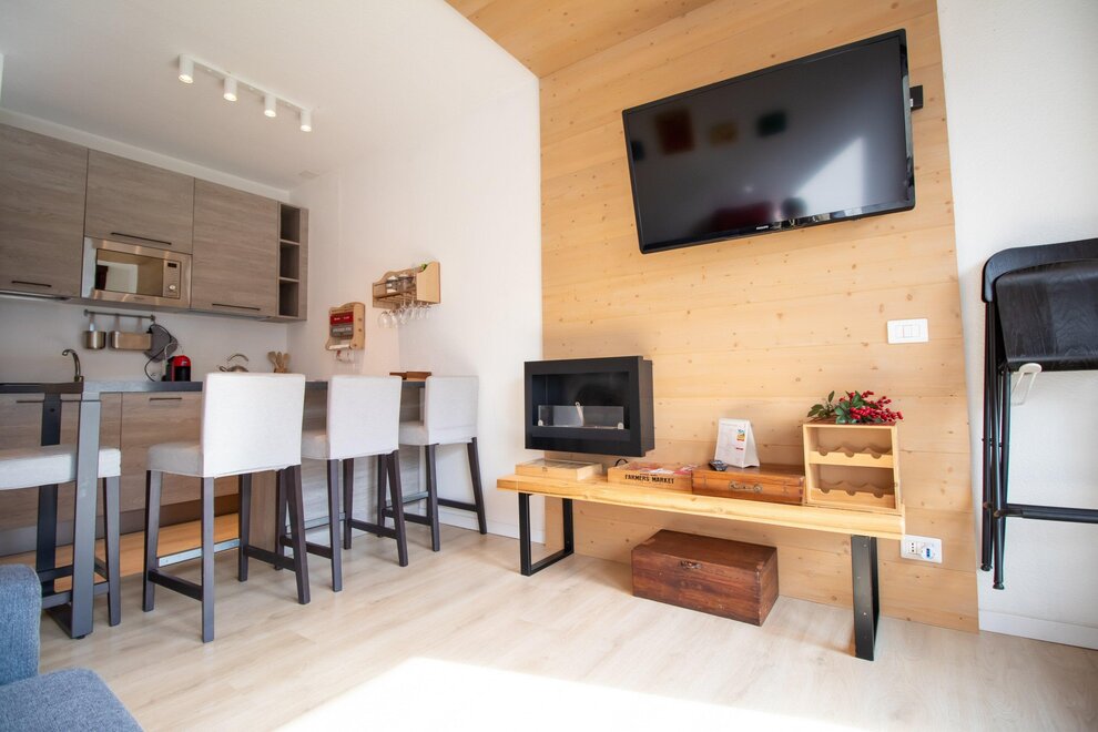 The accommodation has a private entrance and spans two levels (not suitable for guests with reduced mobility). Enjoy a private terrace and the warmth of a fireplace for cosy mountain moments.