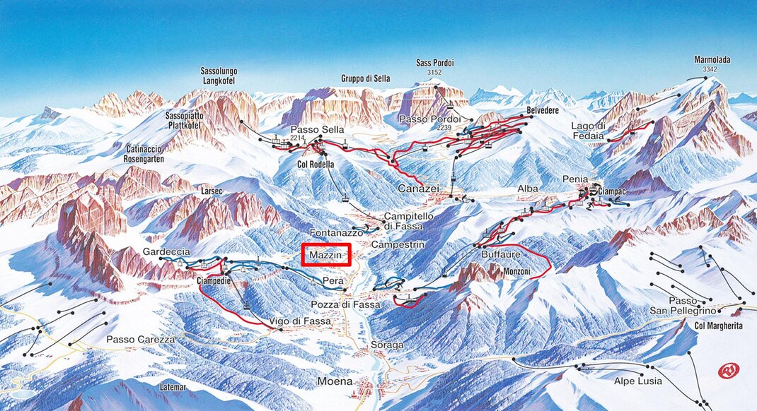 The location is unbeatable: less than 2 km from the slopes of Col Rodella (Campitello) and Pera (Catinaccio area), and only 5 km from Canazei — ideal for skiing in winter or hiking and mountain adventures in summer.
