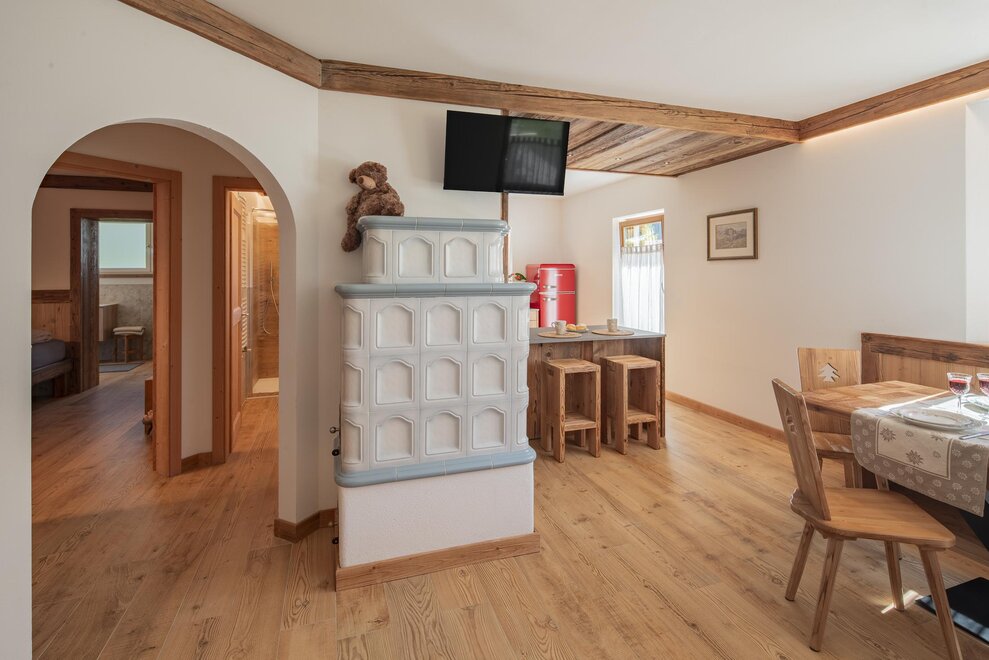 The newly renovated apartments at BATTEL CARLO - LA DOE MAJONS offer you an unforgettable stay in a non-smoking home, with a private garden perfect for relaxing after a day outdoors. You will also have access to a covered parking space and a ski storage with boot warmers for your convenience. Your bicycles will also find their place in the storage next to the parking space.