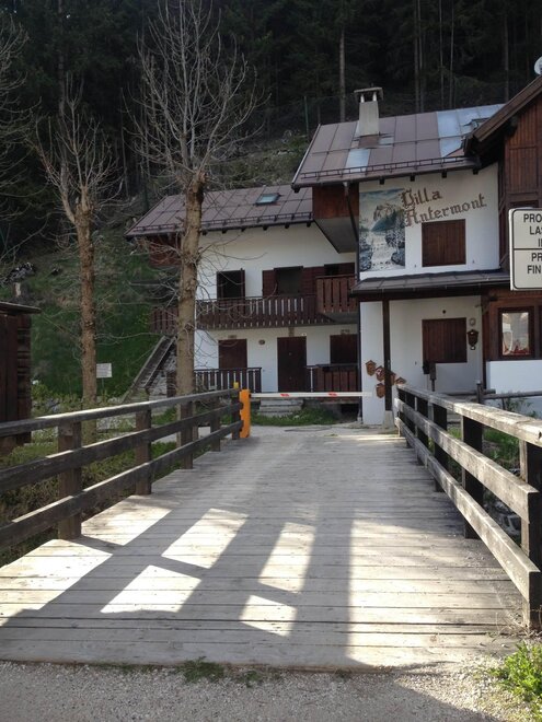 The house Villa Antermont is in Streda dò Ruf de Antermont 11 , directly at the end of the ski-trail from Belvedere/Col Rodella/Sella Ronda. It is a few minutes walk from the cable way and to the cetre of Canazei ( 200 meters).