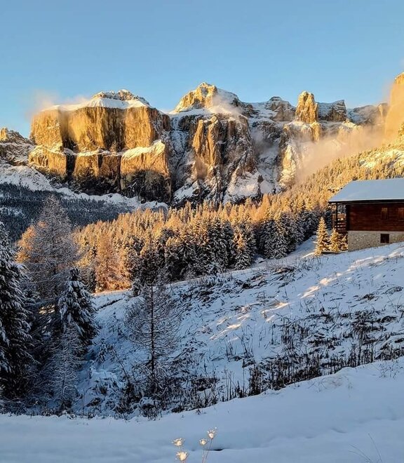 The house is located in Streda dò Ruf de Antermont 11, directly at the end of the ski trail that descends from Belvedere/Col Rodella/Sella Ronda. It is only a few minutes walk from the cable way and the centre of Canazei.