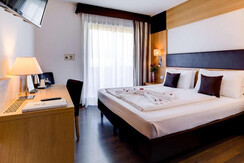 Hotel Adige, the right atmosphere for travellers! Hotel Adige is a 4-stars hotel, located few kilometers away from the historical city centre of Trento. It represents the ideal departure place to reach very easily the more typical places of the region, as well as the cultural and business buildings of the town. It is inside a commercial area, with big parking place, cashpoint, newsagent, some shops and the nearest bus stop is just 200mt by walk. At disposal of the hotel’s guests 70 rooms recently renewed, among different categories/types, a Wellness Centre, where you can get relaxed during your stay,a well-equipped Congress Centre, with availability until 250 sit places and a inside Restaurant. Solutions and attention to the needs of our Guests, ideal location, functional services, constant care from our specialized personal: all this – and more else – is hotel Adige in Trento. Come to visit us!!
