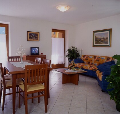 They are bright and roomy, they have a kitchen, a sitting room with two-place sofa-bed, one or two bedrooms, toilette with shower and hair dryer. All the apartments have balconies with a view of the lake or of our magnificent Brenta Dolomites.
